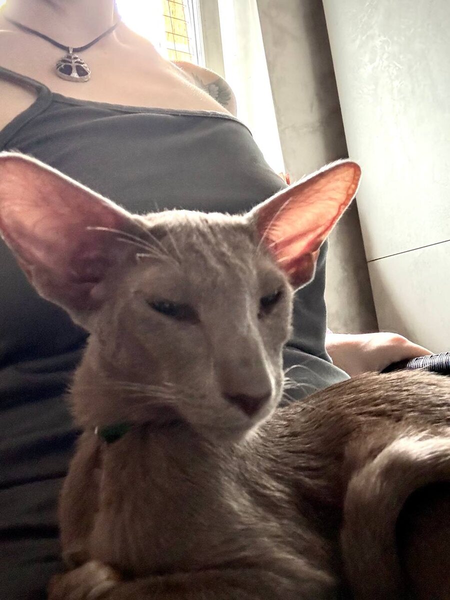Доброе утро от нас с маленьким эльфом Гриней! У нас всё хорошо. Спали вместе. Наши кошки его боятся, как в сказке Чуковского про тараканище. Он совсем малютка же)))