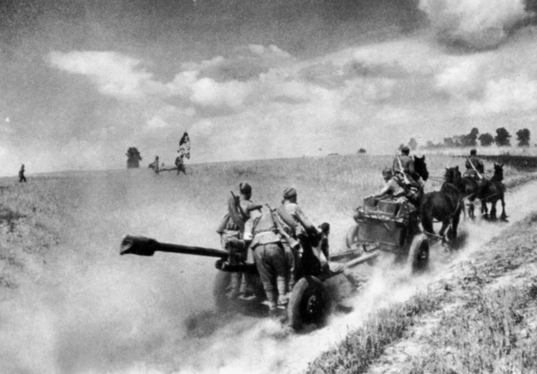 а) специально тренированные гранатометчики быстро разбирают из повозок подготовленные связки гранат;