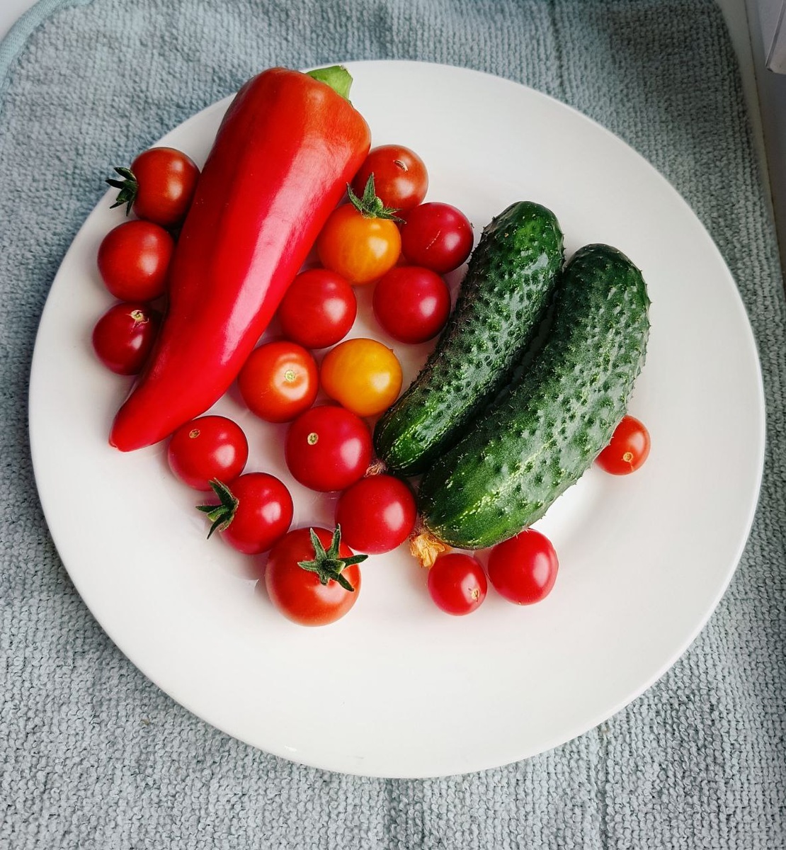 Помидорки сейчас активно спеют, почти каждое утро так собираем 🥰