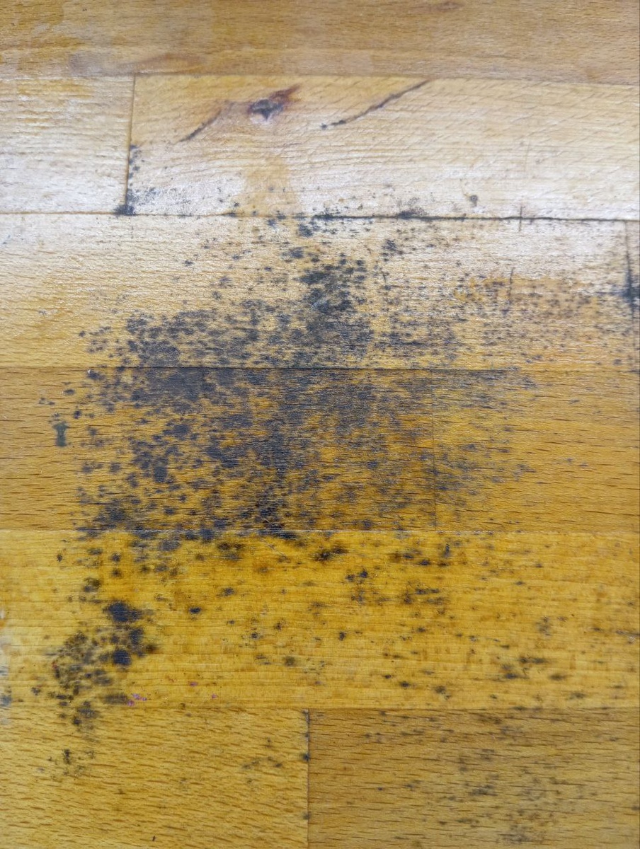 На этом месте столешницы (дерево, ИКЕА) лежал коврик для сушки посуды. Плесень? Пожалуйста, подскажите, что делать?