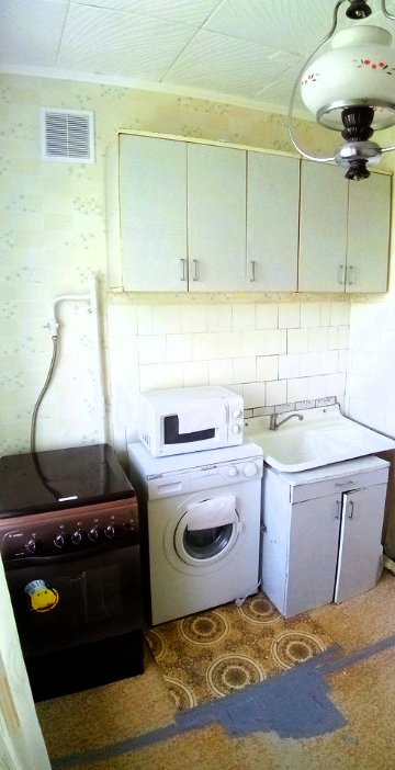 Кухонный гарнитур уютно вошёл в прежние границы, но получил ряд современных решений: узкий духовой шкаф шириной всего 45 см вместил в себя мощность техники, а варочная панель на две конфорки оптимально вписалась в рабочую поверхность — никакого излишнего "хлама", только то, что необходимо.