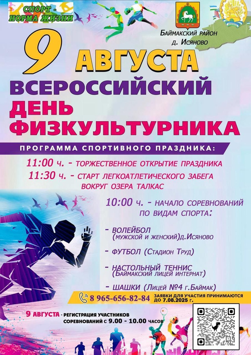 9 августа Физкультурник көнөнә арналған спорт байрамы үтә.