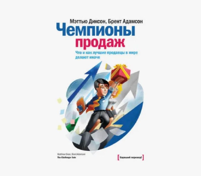 "Чемпионы продаж" ("The Challenger Sale") М.Диксона и Б.Адамсона На основе масштабного исследования 6000 продавцов из разных отраслей авторы опровергают миф о том, что лучшие продавцы — это те, кто строит теплые отношения с клиентами ("Строители отношений"). Вместо этого они доказывают, что в условиях сложного B2B-продаж наиболее эффективен тип "Провокатор" (Challenger). Главные тезисы: ✔️ 1. Существует 5 профилей продавцов: — Провокатор (Challenger): Оспаривает предубеждения клиента, учит его новому, берет контроль над процессом. (Самый эффективный!) — Трудяга (Hard Worker): Усерден, настойчив, следует указаниям. — Решатель проблем (Problem Solver): Фокусируется на деталях и надежности в постпродажном обслуживании. — Одинокий волк (Lone Wolf): Уверенный в себе, следует своей интуиции и методам. — Строитель отношений (Relationship Builder): Фокусируется на построении и поддержании крепких личных связей с клиентом. (Наименее эффективен в сложных продажах!) 2. «Провокаторы" - самые у