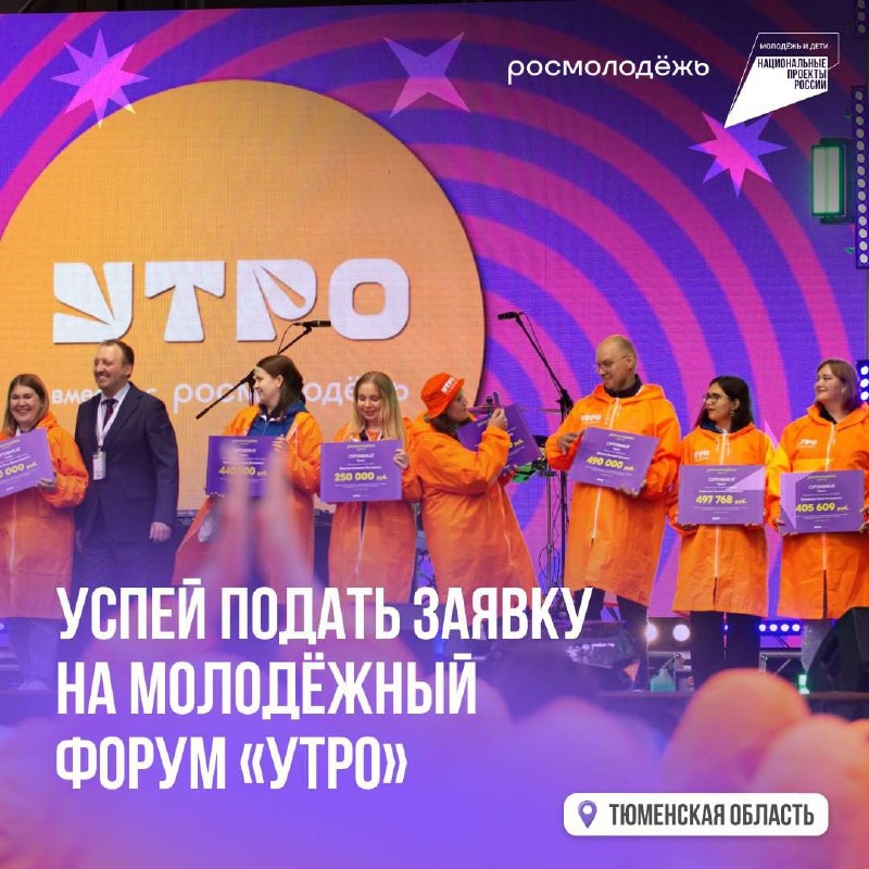 🤍Начни свое «УТРО» с возможности — регистрируйся на форум! Место проведения: Тюменская область Даты: 24-29 сентября 2025 года Участники: от 14 до 35 лет со всех регионов России Форум «УТРО» — это твой шанс: 🤩Развить профессиональные компетенции и гибкие навыки 🤩Ознакомиться с перспективами развития в стране 🤩Изучить тренды рынка труда и современные инструменты работы 🤩Перенять опыт сотрудников крупных компаний 🤩Посетить события, посвященные 80-летию Победы в Великой Отечественной войне 🤩Поучаствовать в добровольческих и социально значимых акциях, творческих активностях и экскурсиях 🤩Познакомиться с инфраструктурой города и предприятиями региона 6 тематических площадок: 🤩Студентам и молодым специалистам: Разработчики, Управленцы, Наставники, Исследователи, Медиатехнологи. 🤩Школьникам: Профессионалы будущего. Регистрация открыта до 24 июля включительно! Источник: Нацпроект «Молодежь и дети»