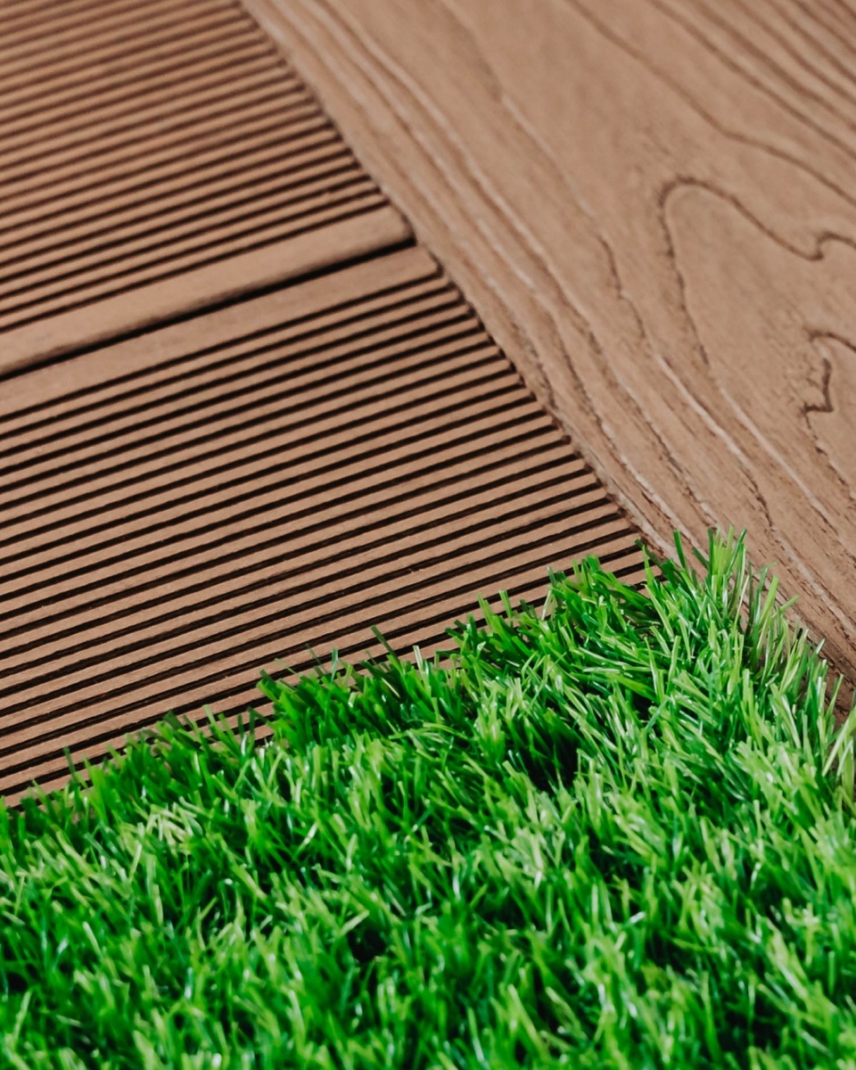 Комбинирование покрытий — это не только красиво, но и практично. Рассказываем, как грамотно сочетать ДПК с другими материалами: 1. ДПК + тротуарная плитка. Отлично смотрится на участках с разным назначением: плитка — для дорожек, ДПК — для зон отдыха. Совет: делайте небольшой температурный зазор между материалами (3–5 мм), особенно при укладке встык. 2. ДПК + галька / щебень Эффектный контраст: тёплый цвет доски и натуральная текстура камня. Важно: отделяйте бордюром, чтобы камень не высыпался на настил. 3. ДПК + бетон / заливная дорожка для участков с высокой нагрузкой (парковка, хозяйственная зона). Важно: при переходе с бетона на ДПК делайте уклон и дренаж — чтобы вода не застаивалась под доской. 4. Разные виды ДПК можно сочетать друг с другом — например, класть рамку одного цвета и фактуры по периметру или зонирование. Выбирайте доски одной фактуры и толщины, чтобы избежать перепадов. Главное правило: продумывайте уровни, уклоны и отвод воды заранее. И не забывайте про деформационн