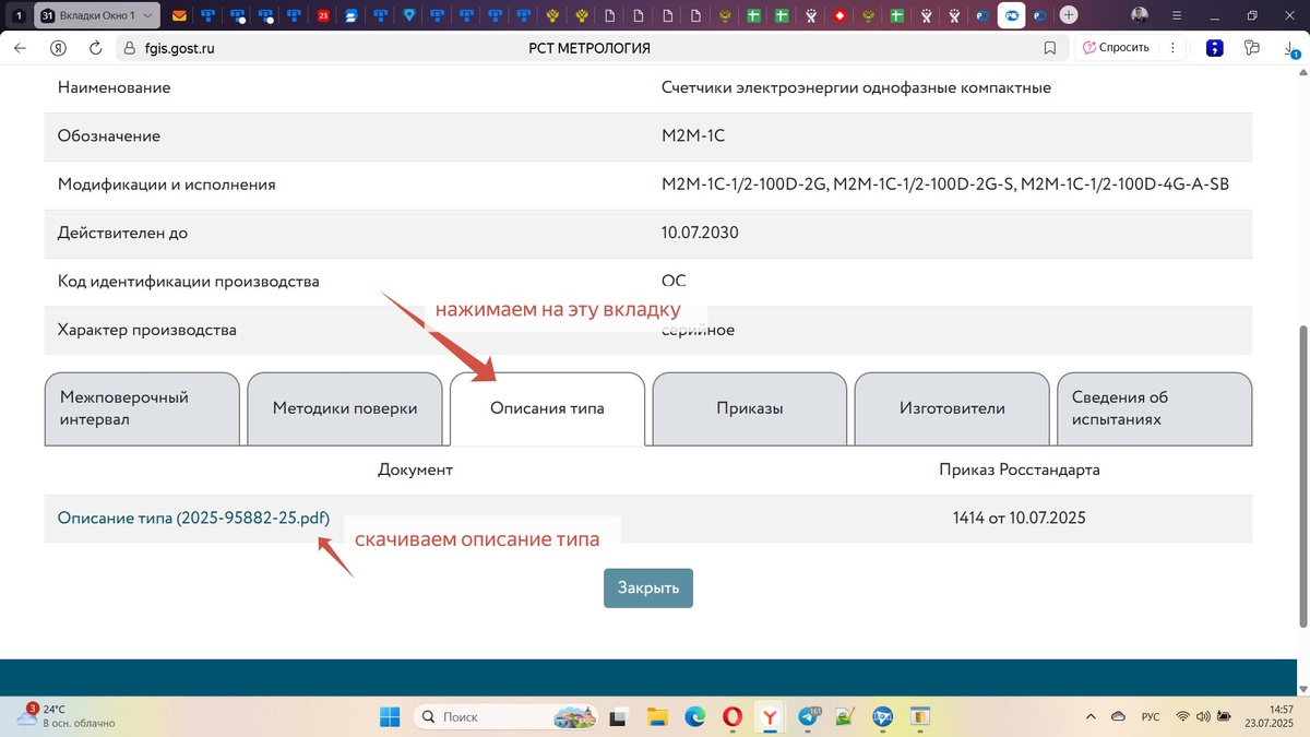И теперь не совсем понятно, как открыть подробные записи о типе СИ и скачать описание типа.