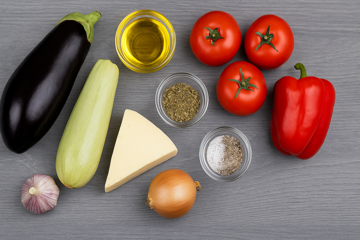 Этот рататуй — не просто овощное блюдо. Это настоящий вкус лета, собранный в одной форме: запечённые баклажаны, сочные помидоры, кабачки и сладкий перец, дополненные ароматом запечённого чеснока и расплавленным сыром. Он может быть лёгким ужином или самостоятельным блюдом без мяса — сытно, красиво и полезно! Ингредиенты: Подавайте рататуй с чесночным хлебом, лепёшками или просто так — он самодостаточен. Можно украсить свежим базиликом и каплей ароматного масла.