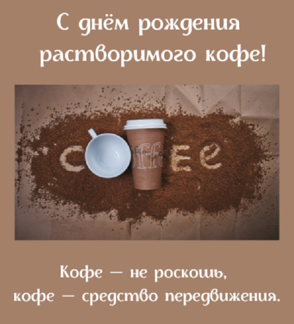 Растворимый кофе, он не хуже, он – другой. И иногда он способен очень выручить, придав немало удовольствия. Потому и день его празднуется отдельно, поскольку у напитка также немало заслуг перед людьми.
