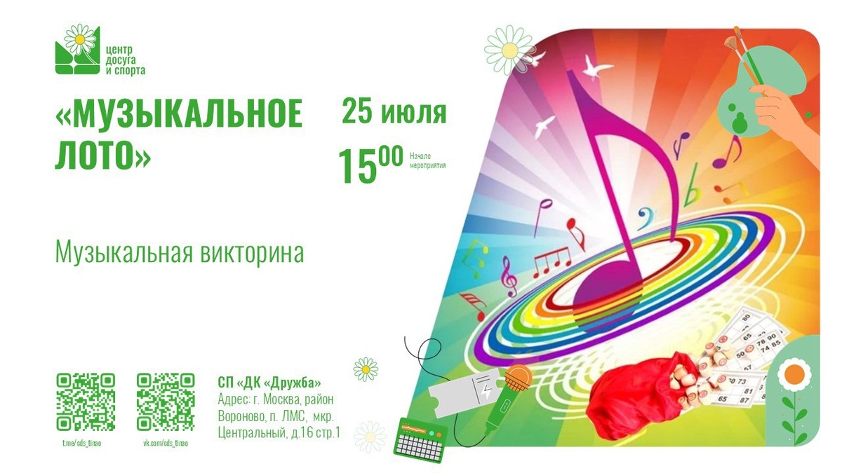 25 июля в СП «ДК «Дружба» пройдёт «Музыкальное лото»!