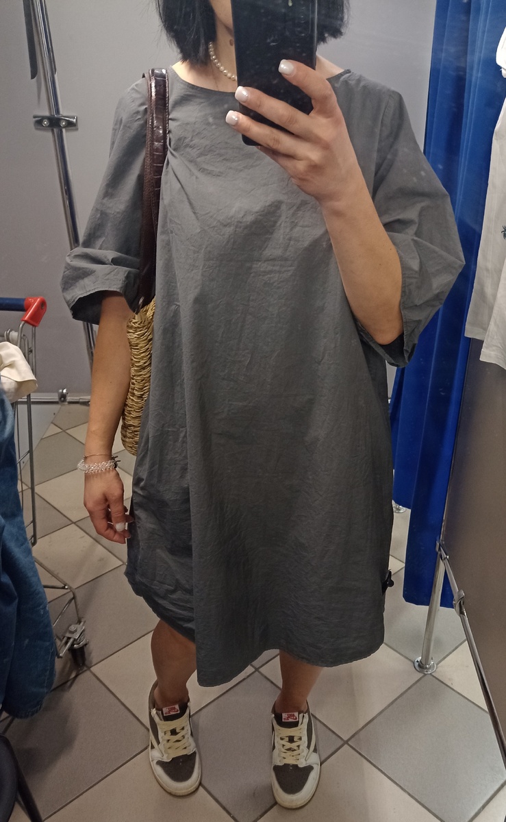 Это статья давностью в месяц. Неоконченая. Оставляю , как есть. Привет из прошлого, так сказать: Приветствую вас, мои дорогие друзья и подписчики! Сегодня, после очередного долгого перерыва, я решила поделиться с вами небольшой подборкой своих находок, которые я откопала в секонд-хендах своего города. Итак, на первом фото, платье от COS. Это серое платье я обнаружила во время примерки в "Мегахенде". Не смогла устоять перед его лаконичным кроем и качественной тканью, поэтому, после небольшой скидки в 10%, оно стало моим за 1300 рублей. Считаю, это просто отличная находка! Серый цвет достаточно спокойный, и я решила разбавить его яркими акцентами. Именно в таком виде и ходила на работу. Как вам такой вариант? Давайте рассмотрим аксессуары которые дополнили этот образ. В комплекте у меня сумочка от Radley London (приобретена за 1400 рублей в Вове), удобные и стильные сабо Flayflop (тоже куплены в Вове за 1350 рублей), акриловый красный браслет от Zarina и бусы с Авито (за 300 рублей)