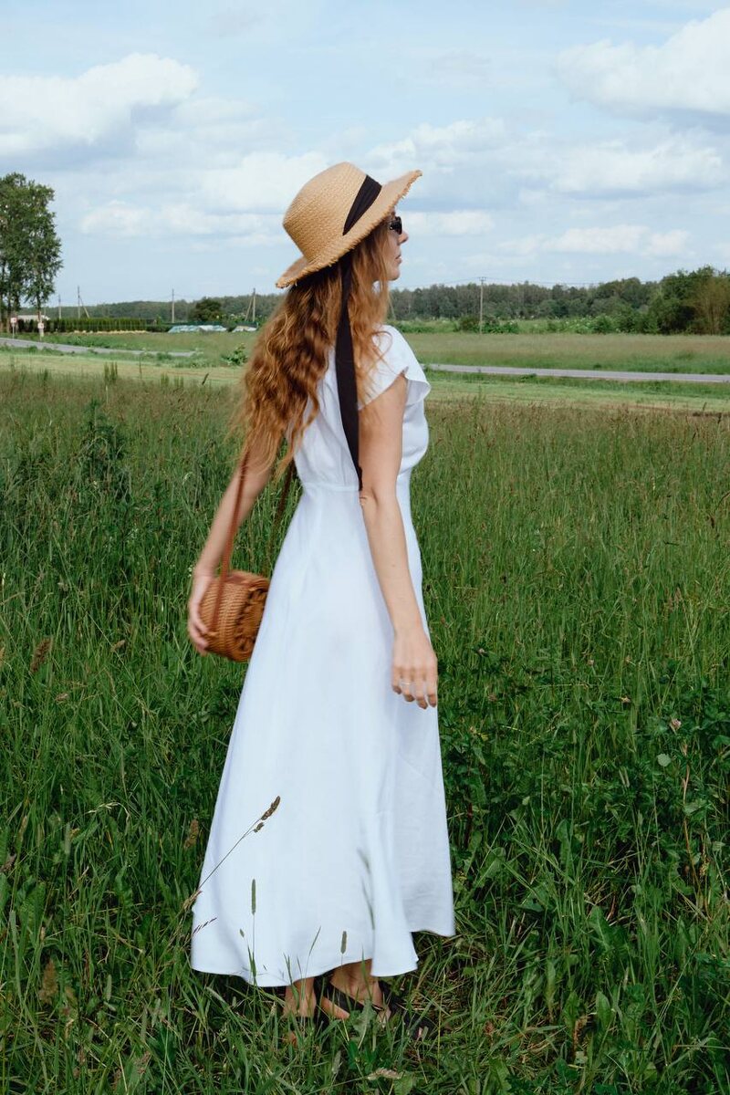 Белый лен — всегда о чистоте, свободе и внутреннем свете. А если это макси-длина с мягким V-образным вырезом, элегантно подчеркивающим линию декольте — перед нами не просто платье, а настоящее заявление. Крой струится по телу, не сковывая движений, рукав лишь невзначай касается плеч — будто приглашение к летнему ветру. Это та самая вещь, в которой легко быть собой: на прогулке по набережной, в утреннем кафе, на террасе под бокал вина. Простота, за которой стоит филигранная работа. И стиль, который заметен без слов.
