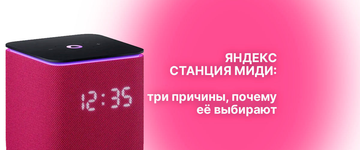 Станция Миди — одна из самых универсальных умных колонок в линейке Яндекса. Компактная, стильная и функциональная — она справляется не только с музыкой, но и с управлением умным домом. Рассказываем, чем она удобна и почему отлично подойдёт для любой комнаты. Станция Миди звучит громко, чисто и объёмно — несмотря на небольшой размер. Она отлично подходит для кухни, спальни, рабочей зоны или даже небольшой вечеринки. А если установить сразу две колонки, их можно объединить в стереопару. Получится полноценная аудиосистема, которую не захочется выключать. Минималистичный дисплей встроен прямо в корпус. На нем отображаются: Особенность — автояркость. Экран подстраивается под освещение и не слепит ночью. Колонка гармонично вписывается в интерьер и не отвлекает лишним светом. Станция Миди доступна сразу в пяти оттенках — от классического белого до насыщенного бордового. Можно легко подобрать колонку под цвет комнаты, мебели или настроения. В Станцию встроен модуль Zigbee — это значит, что вы