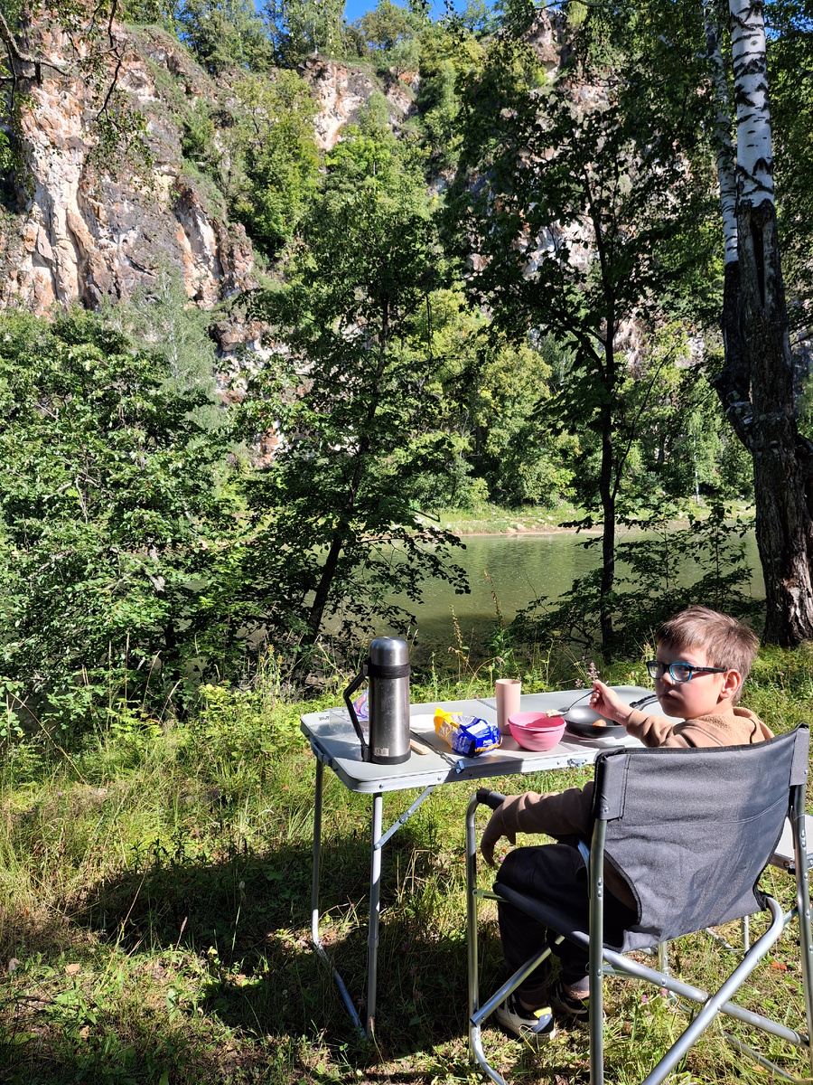 Вёл он нас не по дороге, а по реке и козьим тропам. Благо автомобиль как раз для таких целей. Булькая глушителем УАЗик с лёгкостью преодолевал брод за бродом, яму за ямой. И спустя час мы выехали на сказочную поляну прикрытую отдельно-стоящими деревьями. Восторга небыло предела. Пожелав хорошего отдыха, проводник скрылся в лесу.