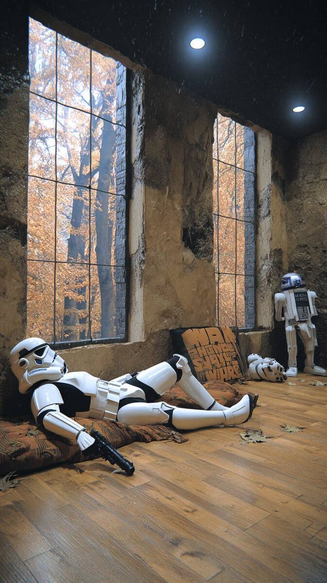 Иногда нейросети не помогают А иногда и живой дизайнер, прямо как этот штурмовик, растекается в своем бессилии. Есть ли какое-то решение? Конечно.. Соскрести себя с пола и пробовать дальше! 😁 Всем отличной середины недели!) Как говорится среда – это маленькая пятница) А я пожалуй поставлю себе эту картинку на обои)