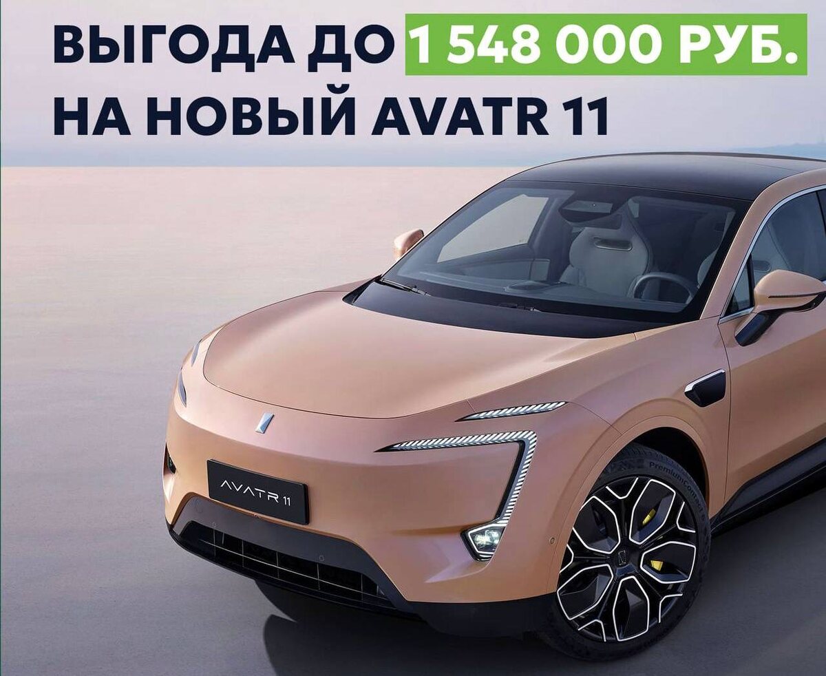 ‼️ Выгода до 1 548 000 ₽ на новый AVATR 11 — с гарантией и официальной поставкой в Россию* ⠀ AVATR 11 — премиальный электрокроссовер нового поколения, созданный при участии Changan, Huawei и CATL. Модель уже доступна официально в России и поставляется с заводской гарантией 8 лет или 160 000 км. ⠀ Что важно: — Это не “серая” поставка, а официальная модель с сервисной поддержкой и запасом хода, который действительно внушает уверенность — Электрокар спроектирован как технологичный флагман — для тех, кто ценит интеллектуальные решения и комфорт ⠀ Для владельцев электромобиля в России это значит: • доступ к парковке и ряду льгот (в ряде регионов) • отсутствие транспортного налога • экономия на топливе • бесшумная езда и минимум обслуживания ⠀ 🔋 Батарея ёмкостью 116 кВт·ч 🚗 Запас хода — до 730 км ⠀ *Авто 2024 года выпуска Максимальная скидка: 12% + 600 000 ₽ — AVATR 11 AWD (5 мест) 7 600 000 ₽ → 6 088 000 ₽ — AVATR 11 AWD (4 места) 7 900 000 ₽ → 6 352 000 ₽ 💰 Выгода до 1 548 000 ₽ Авто 2