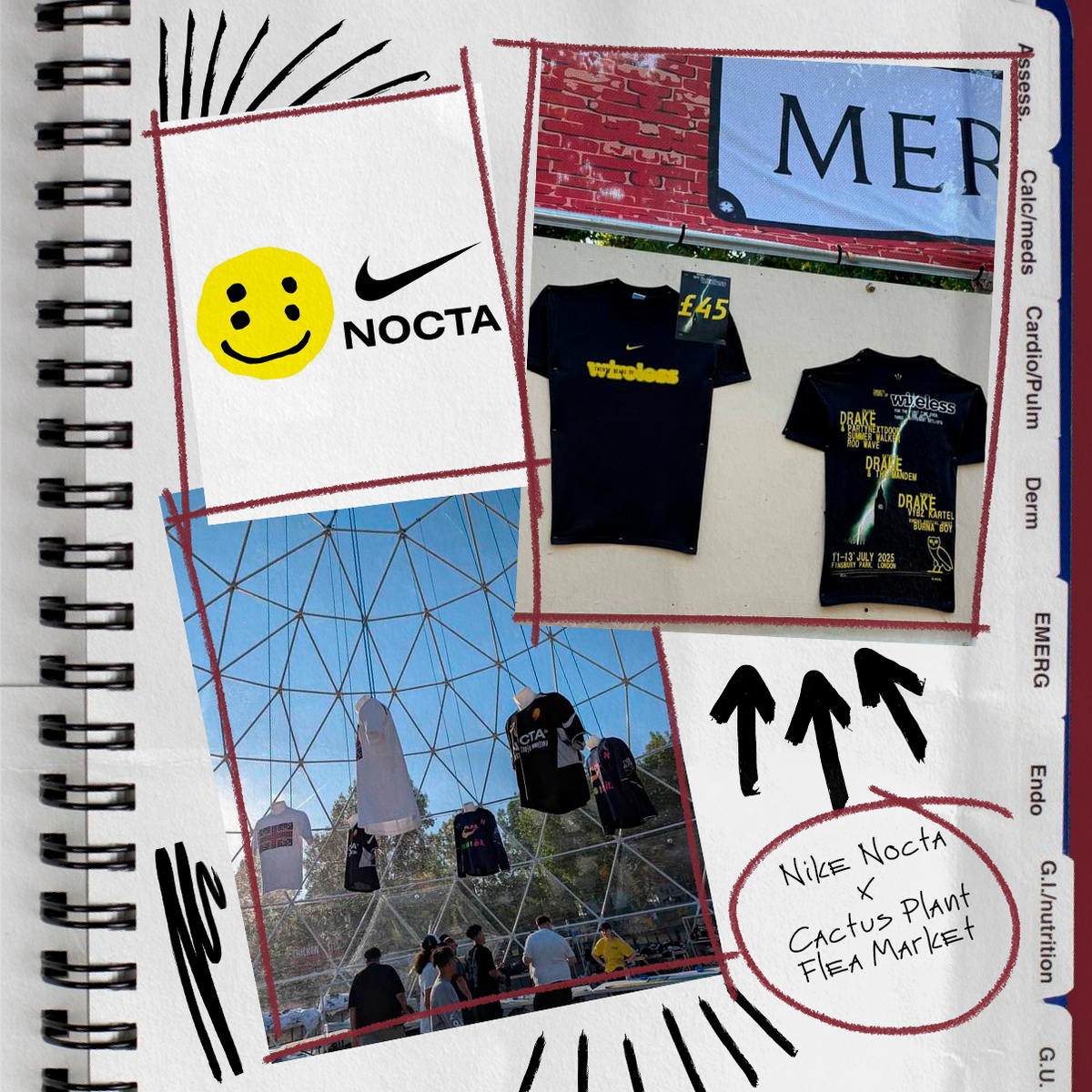 В Лондоне недавно прошел ежегодный музыкальный фест рэпа и хип-хопа Wireless. На нем был дропнут мерч Nike Nocta x Cactus Plant Flea Market. Смотрится, как наработки начинающего дизайнера, который добрался до плагинов фигмы. Ну или, наоборот, топового креатора современности. Как вам? Больше интересного на нашем сайте POIZON