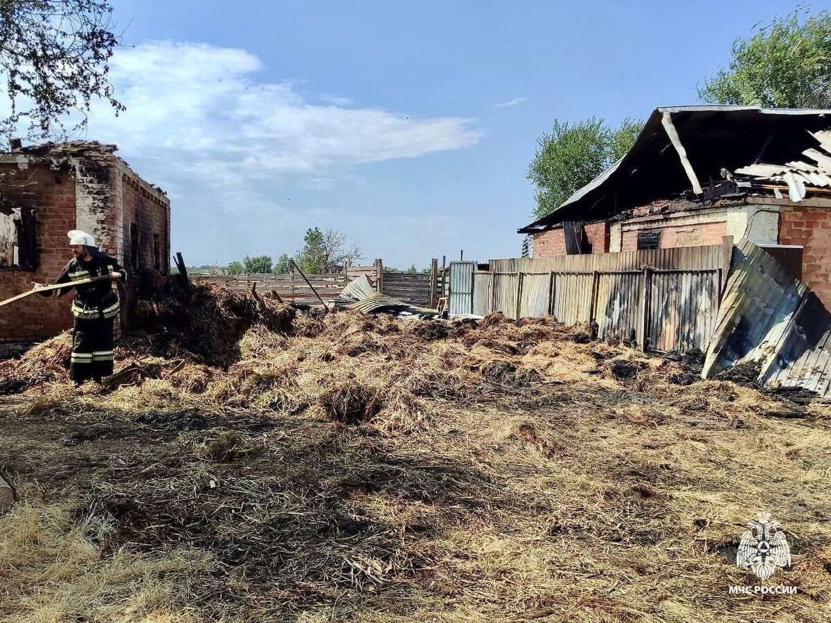 Дочь хозяйки вовремя заметила возгорание на крыше жилого дома и в хозяйственной постройке с сеном. Женщина сразу же вызвала МЧС, специалисты прибыли на место через 5 минут.