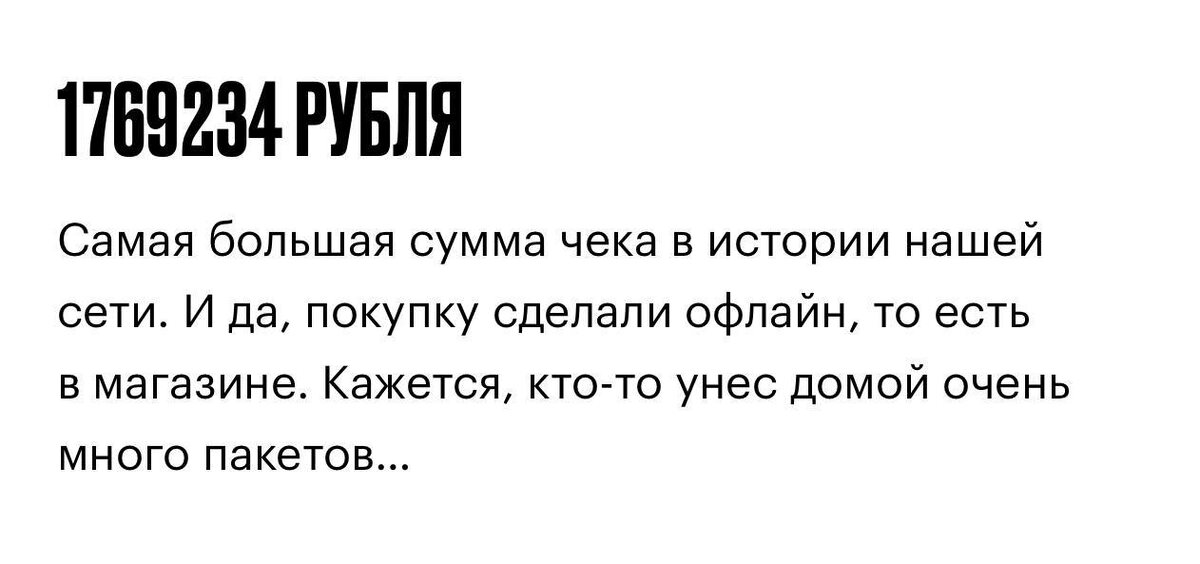 ЗЯ поделились суммой самого большого чека за их историю — 1,7 миллиона рублей на покупку офлайн