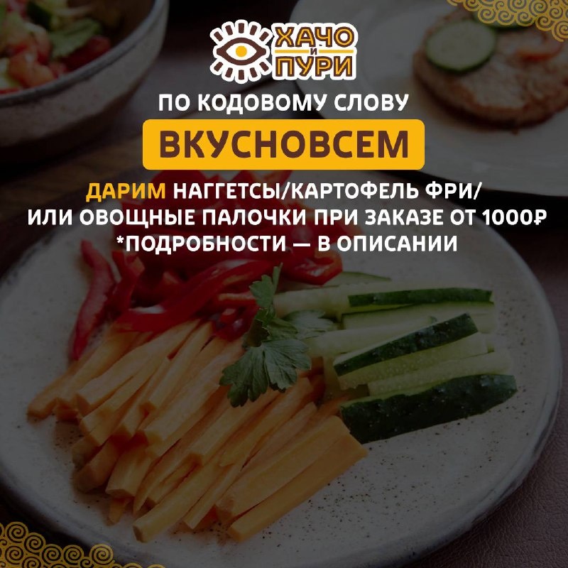 🎁 В КУДРОВО ВКУСНО ВСЕМ — особенно семьям с детьми! В ресторане @hachoipuri_spb с 12:00 до 17:00 по будням при заказе в зале от 1000 ₽ — дарим блюдо на выбор из детского меню: 🍟 картофель фри 🍗 куриные наггетсы 🥕 овощные палочки Просто скажите официанту кодовое слово «ВКУСНОВСЕМ» — и получите подарок для маленького гурмана! ⠀ 📍 Европейский проспект, 8 📞 409-60-99 *Акция действует до 31 августа. Не распространяется на ланчи, доставку и самовывоз. За подробностями обращайтесь к менеджеру ресторана.