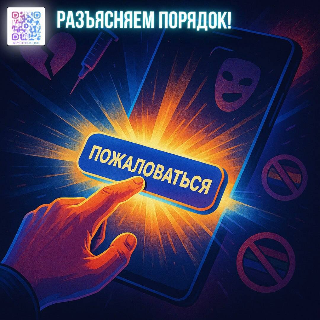 Дополнительно рекомендуем использовать встроенные инструменты платформы! Почти все соцсети и мессенджеры (VK, Одноклассники, Telegram, WhatsApp, YouTube и т.д.) имеют кнопку "Пожаловаться" ("Report", "Сообщить о нарушении") рядом с постом, комментарием, профилем или в настройках чата.