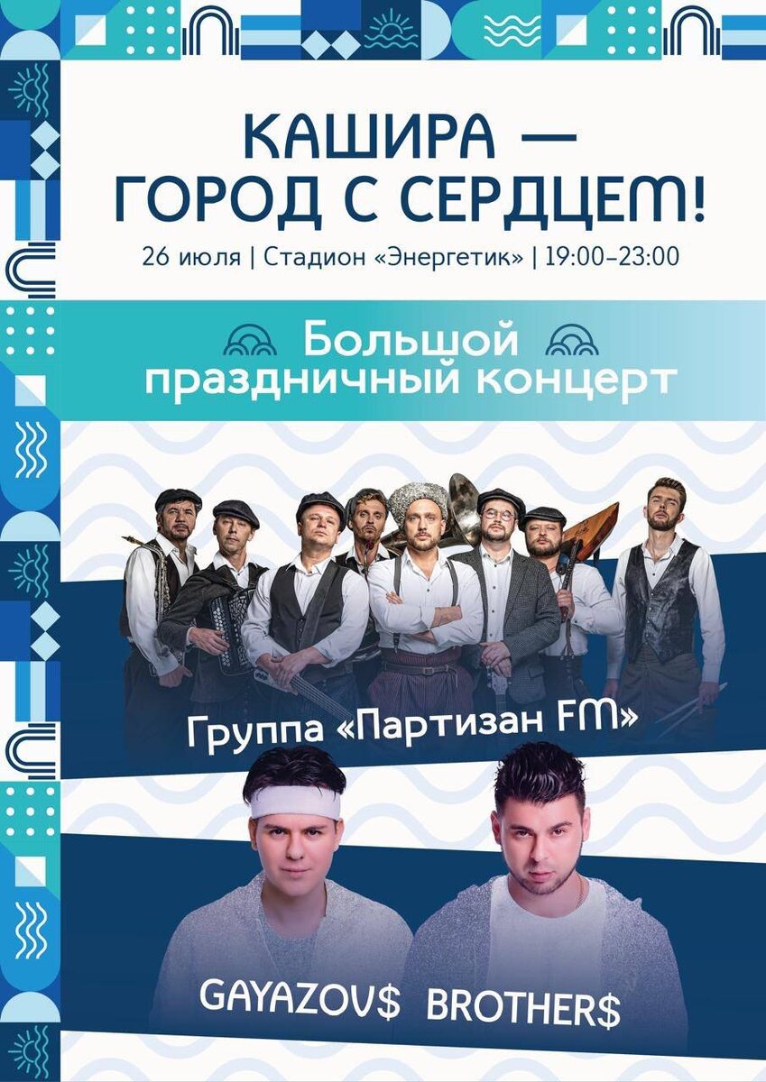 🎉Уже на этой неделе Кашира отпразднует День города Приближается любимый праздник каширян — День города. В этом году Кашира отмечает свой 669-й день рождения. Гостей и жителей города ждет яркая и насыщенная праздничная программа, в которой будут задействованы все микрорайоны Каширы! 📍Основные праздничные мероприятия запланированы на субботу, 26 июля. В Кашире-1 пройдет ярмарка местных предприятий, мастер-классы, выставки, конкурсы и викторины, а также анимационная программа для детей и концерт местных талантов. 📍Главная праздничная площадка на стадионе «Энергетик» откроется в 18.00. Для горожан и гостей Каширы выступят творческие коллективы города, а также на сцену выйдут группы «Партизан FM» и «GAYAZOV$ BROTHER$».