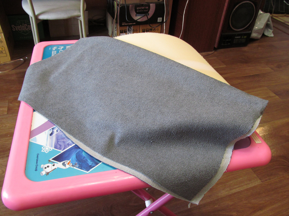 В итоге я вырезал ножницами поролон под сидушку и приступил к разметке обивочной ткани.