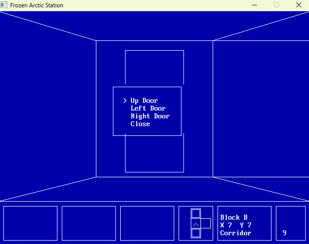 Игра сделана по картинке из головы. Такой синий лабиринт. Из линий. И какая-то тема про замороженную арктическую станцию. История. Текстовые экраны. Это важно. Из такой идеи получилась такая игра. В ретро теме. 80ых ЭВМ.