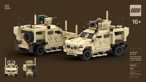 Крутой LEGO Oshkosh M-ATV от Keith Hwang! 🚨 Ультраподробная модель бронеавтомобиля в песочном цвете — 400 деталей, вращающаяся башня, открывающиеся двери и отсеки. Выглядит мощно и реалистично. 16+ для серьёзных сборщиков. #LEGO #MOC Источник: Flickr Lego Builders group