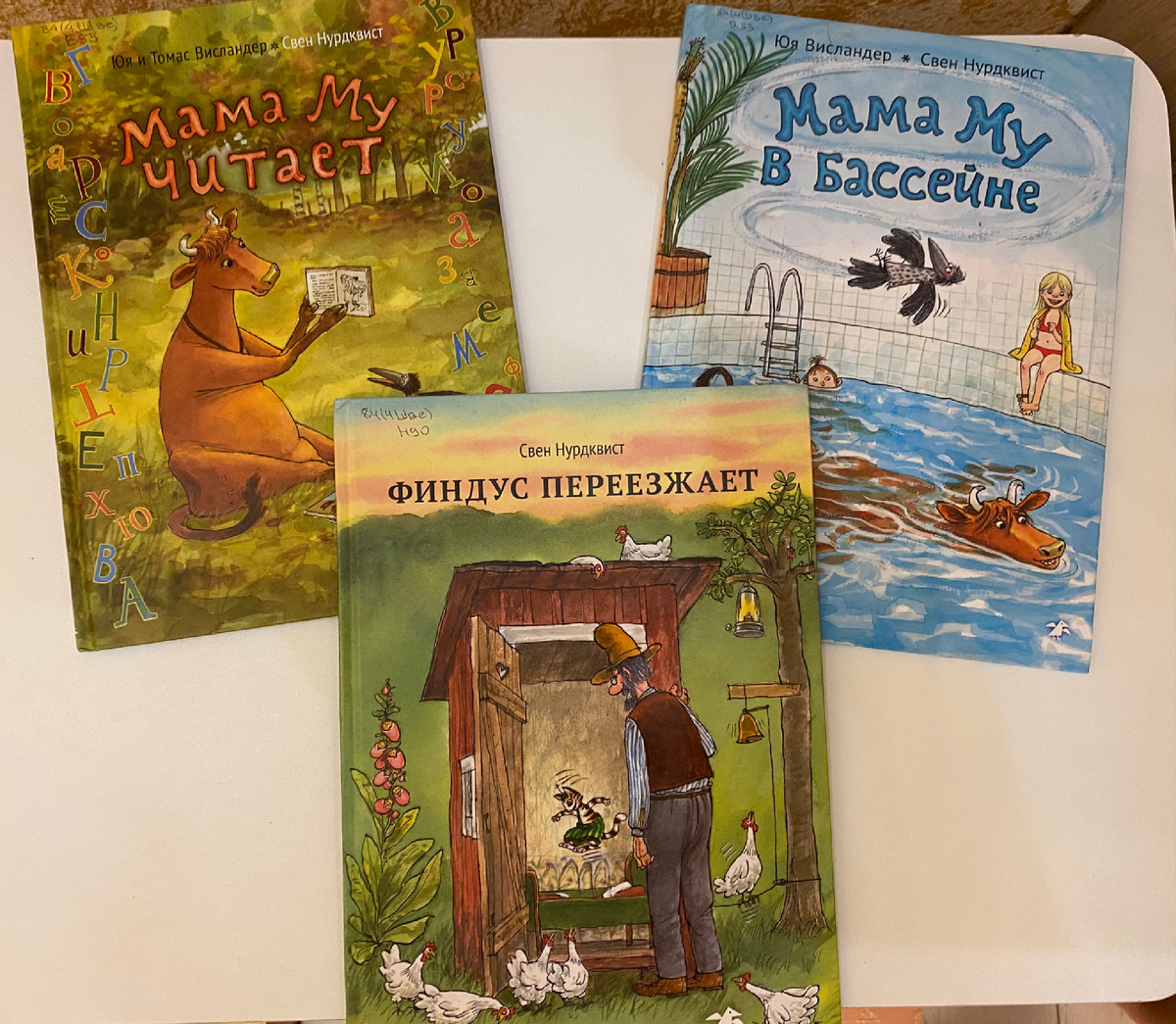 Ранее я писала о нашем удачном походе в библиотеку здесь 👇 Предыдущее наше посещение пропустила. Мы продолжили чтение понравившейся нам серии про маму Му, а также для знакомства взяли книгу о Петсоне и непоседе Финдусе. От иллюстраций мамы Му мы были опять в восторге, особенно Вере почему-то безумно нравятся её копыта. Знакомство с Финдусом продолжим чуть позже, я уже присмотрела книги из этой серии для зимнего предновогоднего чтения. Что мы взяли на сегодня? Две замечательные книги серии «Веселый виммельбух» (издательство «ЭНАС-КНИГА»). Сюжет очень короткий, текста совсем мало. Маленькая Эмма и ее братик Илья приехали погостить к своей бабушке. У нее так интересно и весело! Можно погулять в саду, покормить кроликов, помочь бабушке в огороде и поиграть в домике на дереве. Только вот один из бабушкиных любимцев, маленький серенький кролик, куда-то всё время прячется. Внутри этого сюжета вплетены задания. Малыши должны помочь в поисках кролика, также можно подробно рассмотреть к