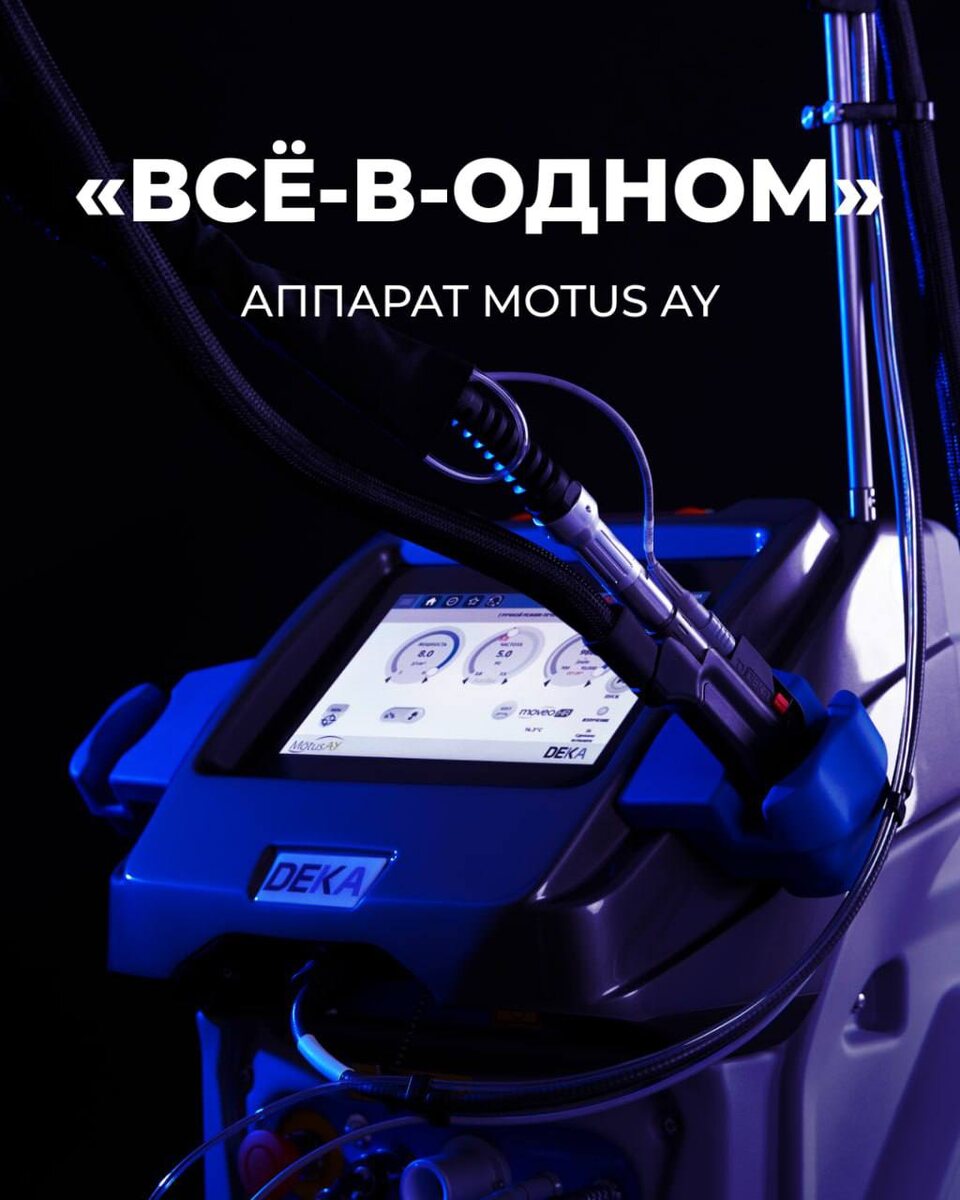 «ВСЁ-В-ОДНОМ» Motus AY оснащён двумя лазерными источниками: александритовым 755 нм и Nd:YAG 1064 нм. Аппарат Motus AY способен выполнять широкий спектр косметологических и дерматологических процедур: ➖ Александритовая лазерная эпиляция, технология MOVEO ➖ Телеангиоктазии на лице и теле ➖ посттравматические застойные пятна (постакне и др.) ➖ Гемангиомы на лице и теле ➖ Лазерное неодимовое омоложение ➖ Неровномерный цвет лица ➖ Ладонные и подошвенные бородавки ➖ Онихомикоз (грибковое поражение ногтевых пластин) ➖ Терапия акне ➖ Лечение Герпеса ➖ Лечение фолликулитов ➖ Коррекция поверхностной гиперпигментации (солнечное лентиго, пойкилодермия Сиватта) При покупке аппарата вы получаете свыше 200 встроенных протоколов, разработанных для технологии Moveo и стандартных насадок. Для получения более подробной информации оставьте комментарий под этим постом ✔️