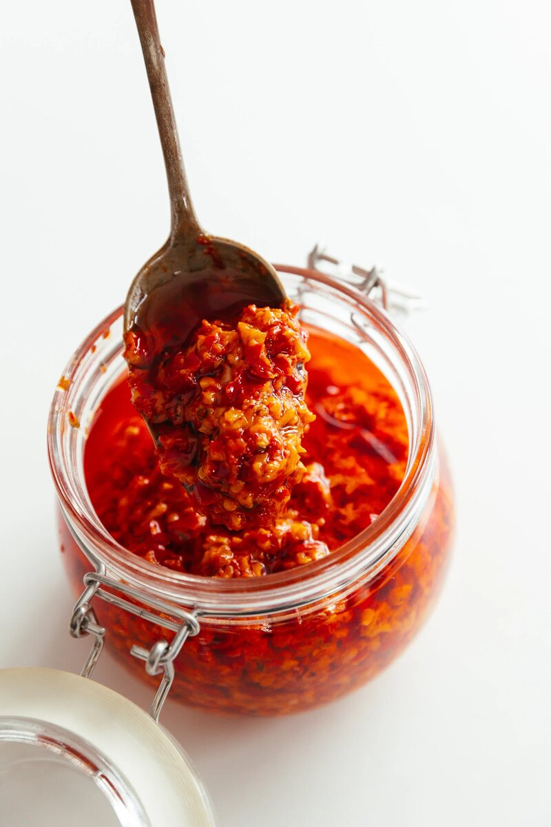 Особенностью этого соуса является использование различных сортов острого перца, сочетание свежих ингредиентов и медленного процесса приготовления, позволяющего раскрыть всю глубину вкуса. Перцы: Рекомендуется использовать минимум два типа острых перцев. Маленькие перчики (типа "Небесные глазки" или тайские чили) обеспечивают необходимую остроту, тогда как более крупные красные перцы добавляют красивый красноватый оттенок.