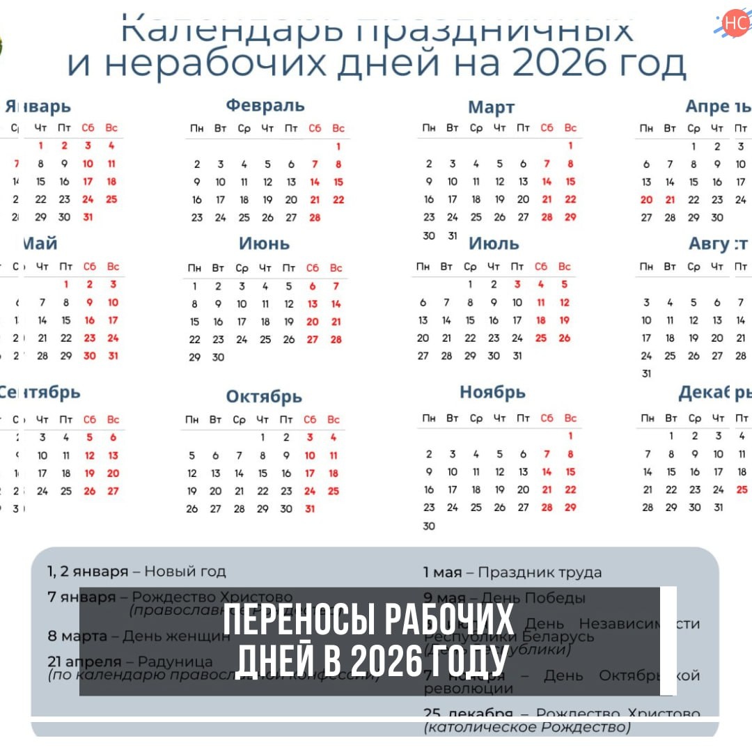 💥Длинные выходные в январе, апреле, мае и декабре. Утверждены переносы рабочих дней в 2026 году 💳Постановление Правительства от 22 июля 2025 г. № 397 🔄 Переносы рабочих дней в 2026 году: ✅Рабочий день 20 апреля (понедельник) переносится на субботу 25 апреля. Днями отдыха будут 18 (суббота), 19 (воскресенье), 20 (понедельник) и 21 (вторник) апреля 2026 года – 4 дня. ‼️При этом организациям с учетом специфики производства (работы) предоставляется право осуществить перенос рабочего дня (20 апреля) на иной выходной день, приходящийся на субботу. 👉 Продолжение на сайте polese. by