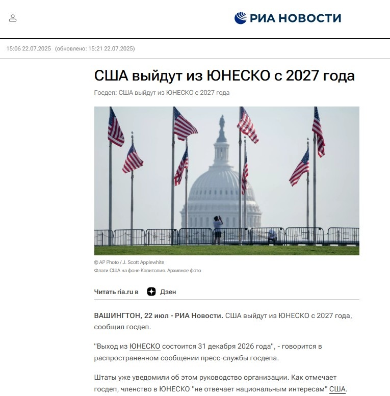 Возможно, настоящая проблема — не в ЮНЕСКО, а в неспособности США адаптироваться к многополярному миру. Время, когда США могли диктовать правила международным организациям, прошло. Сегодня приходится конкурировать за влияние с Китаем и Россией, которые играют по другим правилам и имеют другие ресурсы.