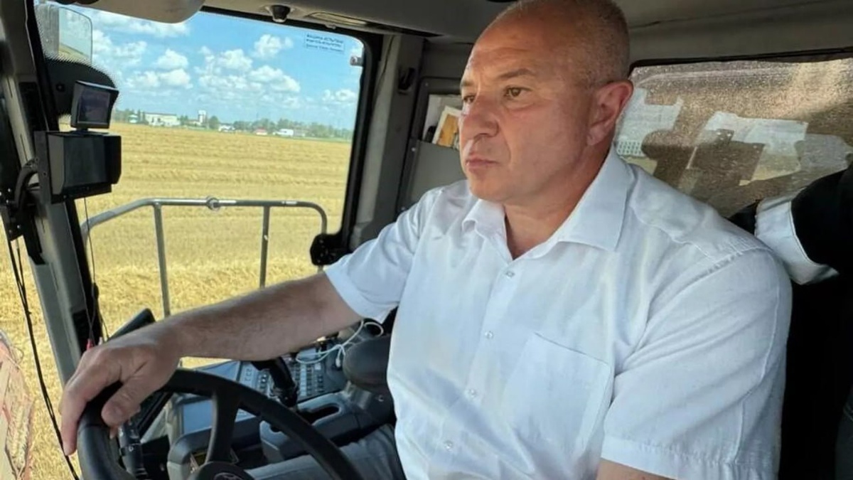 Председатель Гродненского облисполкома Юрий Караев сел за руль комбайна и лично намолотил семь тонн зерна