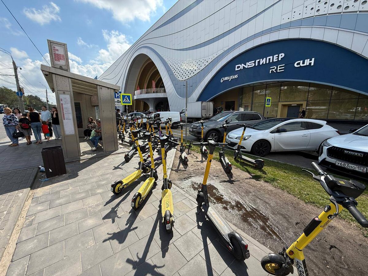 Самокаты заполонили территорию у «Океаниса» настолько, что людям приходится их перепрыгивать