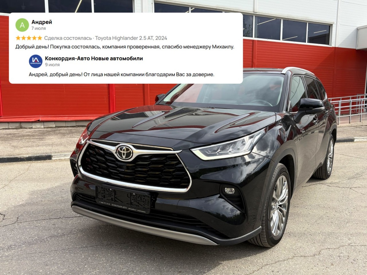 Довольные клиенты — лучший результат нашей работы!🔥 В июле Андрей приобрёл у нас Toyota Highlander 2.5 AT 2024 года и оставил отзыв: «Добрый день! Покупка состоялась, компания проверенная, спасибо менеджеру Михаилу» Для нас особенно ценно, когда клиенты остаются довольны не только автомобилем, но и сервисом. Благодарим вас за доверие💙 #конкордия_отзывы