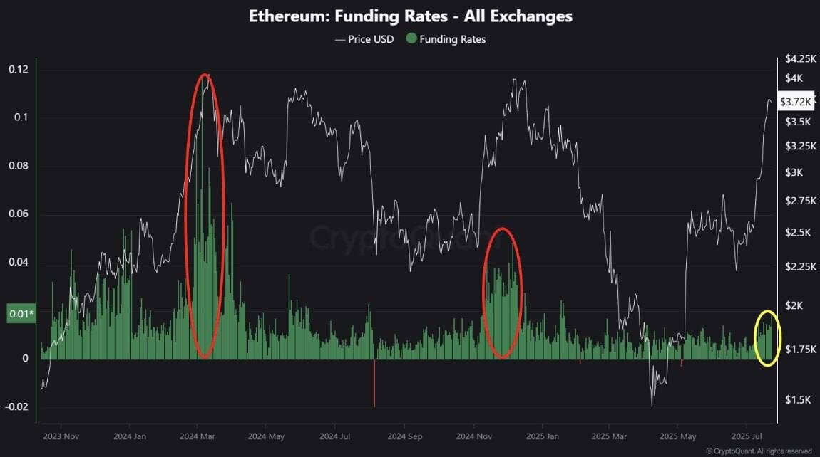 Ethereum вырос — но перегрет ли рынок? По данным CryptoQuant, несмотря на существенный рост ETH, до перегрева далеко. Funding Rates остаются на исторически низком уровне — массовой эйфории пока не наблюдается. Funding Rates — это ставки между лонгами и шортами. Высокие значения обычно сигнализируют о перегреве. Сейчас они значительно ниже, чем перед предыдущими коррекциями. Вывод: локальная просадка возможна, но глобально рынок стабилен ➡️Новости крипторынка - CryptoSOS_NEWS ➡️Бесплатный чат с экспертами - CryptoSOS chat