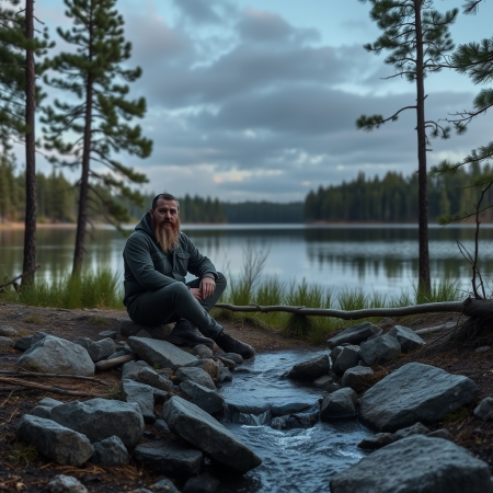 Мы сидели с Михаилом, карельским охотником, на берегу большого лесного озера. Воздух потихоньку остывал от жары и вокруг становилось всё тише и тише,так что, со временем, слышалось биение собственного сердца. Лишь изредка её разрывал шелест ветра в сосновых кронах. Прямо перед нами, сквозь камни, струился ручей, сверкая на солнце тысячами серебристых искр. Глядя на ручей понимаешь, что здесь всё взаимосвязано и только человек лишний.