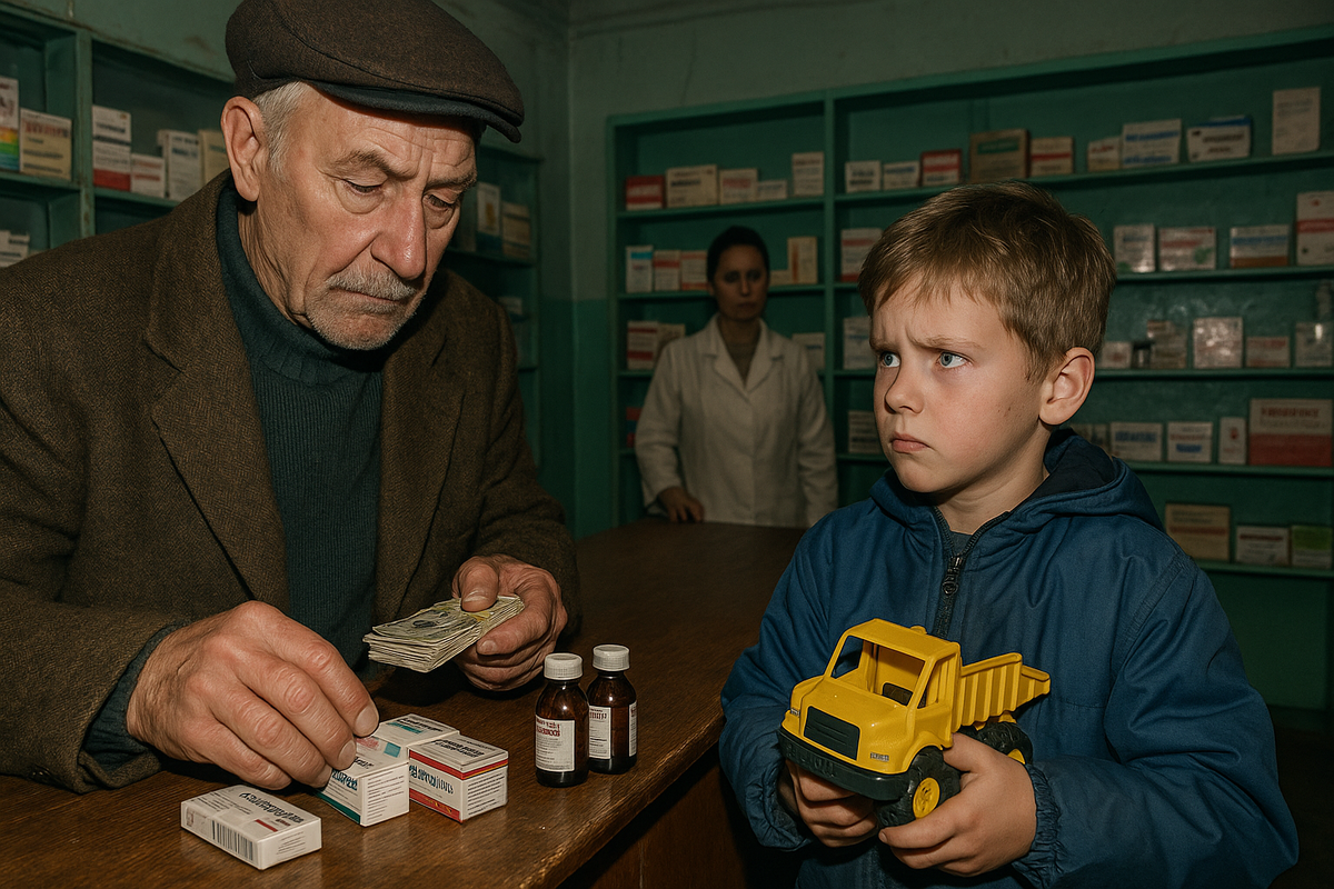 В тот день они поехали в город за пенсией. Андрейка уже мечтал, как дедушка купит ему мороженое и новую машинку. Но дед направился в аптеку и потратил половину пенсии на лекарства.