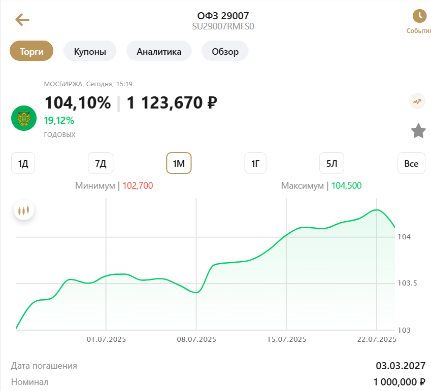 когда был объявлен новый купон по самому длинному выпуску ОФЗ 29010 и цена этих облигаций выросла, как я и предсказывал, до 107%.