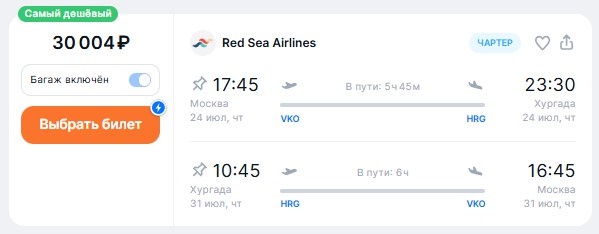 ✈️Москва - Хургада (Египет), прямой рейс, туда и обратно, с багажом за 30.000 рублей 24 июля - 31 июля - https://checkintime.ru/9gjm 🏖 Поиск туров | ✈️Авиабилеты