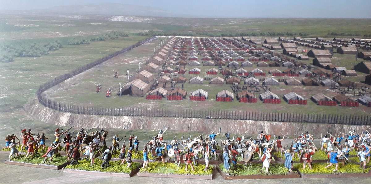 По всему римскому лагерю слышны были страшные крики, проклятья, мольбы; там царили паника, смятение, смерть. Это была даже не кровопролитная битва, а истребление, уничтожение врагов; за полчаса с небольшим погибло свыше четырехсот легионеров, остальные опрометью бежали куда глаза глядят.