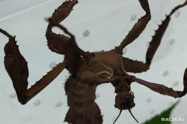 Это растительноядные насекомые хоть и родом из Австралии, но с удовольствием уплетают листья волгоградских роз. И прекрасно себя чувствуют в импровизированных террариумах, сделанных из пластиковых коробок с множеством крохотных отверстий. Своими лапками они могут цепляться даже за эти дырочки.