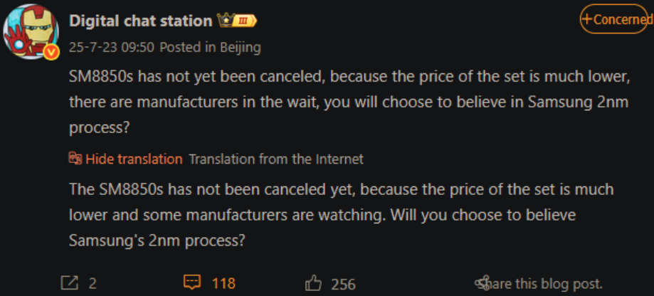 В сети ранее циркулировали слухи о чипсете Snapdragon 8 Elite 2, произведенном на заводе Samsung Foundry. Вскоре после этого появился другой слух о том, что проект полностью отменен. Теперь же, известный инсайдер Digital Chat Station с Weibo отметил, что SM8850s (вероятно, кодовое название вышеупомянутого чипа) всё ещё существует. Инсайдер сообщает, что некоторые OEM-производители могут отказаться от чрезмерно дорогого Snapdragon 8 Elite 2, произведенного на заводе TSMC по нормам N3P, и выбрать вариант от Samsung. Однако он может не выйти одновременно с аналогом от TSMC в конце сентября, поскольку Samsung всё ещё усердно работает над стабилизацией выпуска продукции для своего 2-нм техпроцесса SF2, на котором будут производиться SM8850. Это новая разработка, поскольку изначально предполагалось, что вариант Snapdragon 8 Elite 2 будет версией «For Galaxy», предназначенной для складных смартфонов Samsung, таких как Galaxy Z Fold 8 и Galaxy Z Flip 8. По сути, это создаст два типа устройств