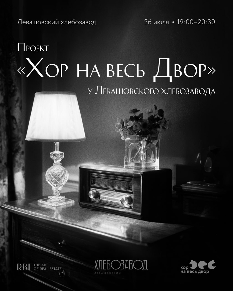 Песни, которые мы знаем наизусть В прошлом году в сквере рядом с Левашовским хлебозаводом танцевали, а в этом – поём. 26 июля в 19:00 Хор на весь Двор снова собирает нас вместе. Советская классика, знакомая с детства, та самая, что звучала у бабушки на кухне или в машине родителей. Помните, как раньше слушали радио, ждали свою любимую песню и боялись, что кто-нибудь переключит волну в самый важный момент? В эту субботу мы будем петь так же искренне, как в детстве — во весь голос, без стеснения и без оглядки на других. Присоединяйтесь к нам — и почувствуйте, как музыка снова собирает людей вместе. Вход свободный
