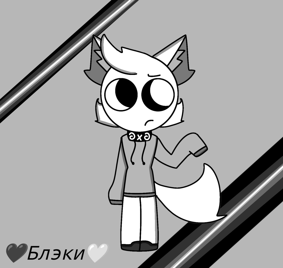 Знакомьтесь, это Блэки^^ у него разные глаза. Носит серое худи и темно-серые тапочки, еще у него есть ошейник. По рассе он лис🦊 Характер: пофигист, добрый, весёлый. И конечно же он пушистик :3🌹✨