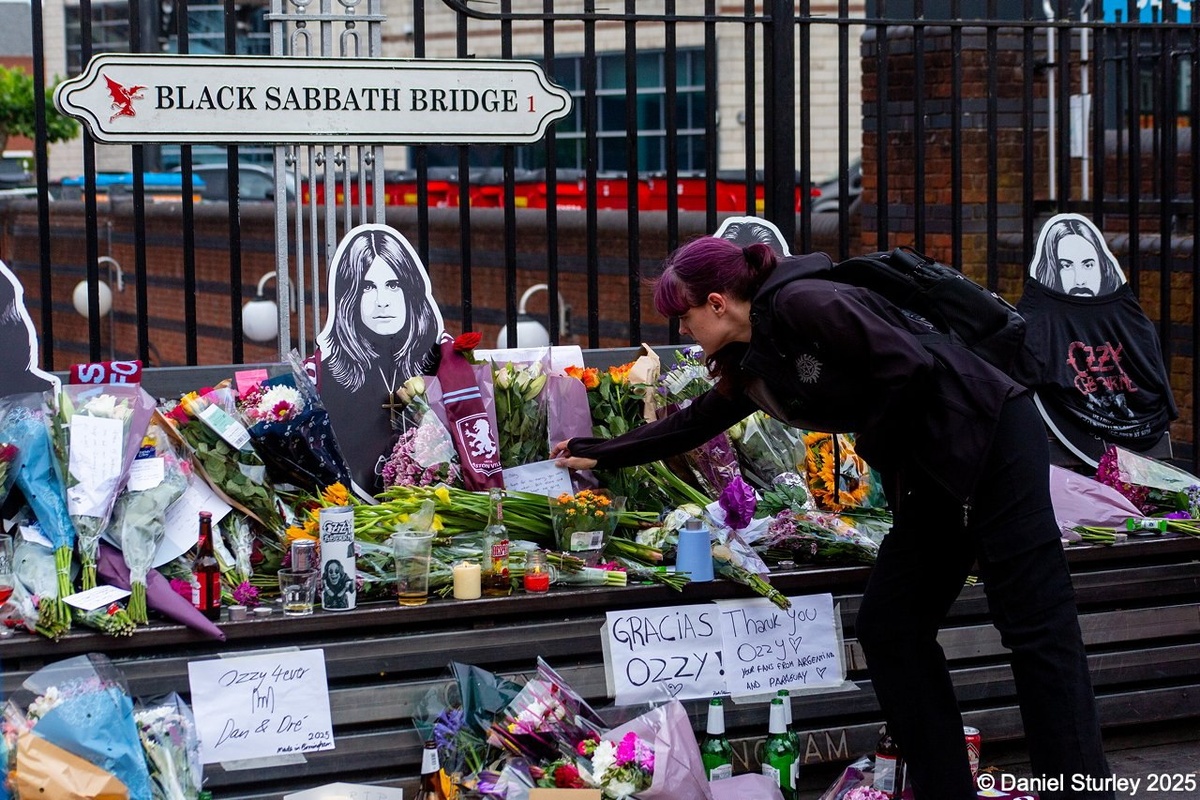 😢 В Бирмингеме на мосту Black Sabbath и у настенного граффити люди продолжают оставлять цветы, записки и памятные вещи в честь легенды рока
