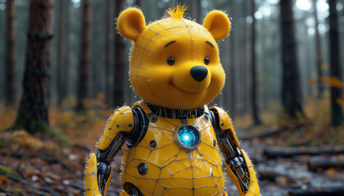 В 2145 году Стоакровый Лес, некогда полный жизни, начал увядать. Листья на деревьях желтели даже весной, река Иорданка покрылась странной плёнкой, а пчёлы покинули свои ульи. Учёные из лаборатории «Квантовый Улей», спрятанной под корнями древнего дуба, создали последнюю надежду — Нейрополемерного Винни-Пуха. Его тело, сотканное из самообучающихся нанополимеров, мерцало, как роса на паутине, а вместо медового горшочка на спине пульсировал голографический интерфейс. — Винни, ты… ты теперь как супергерой из голофильмов! — запищал Пятачок, разглядывая, как ветви дерева автоматически склоняются к металлическим лапам медведя.