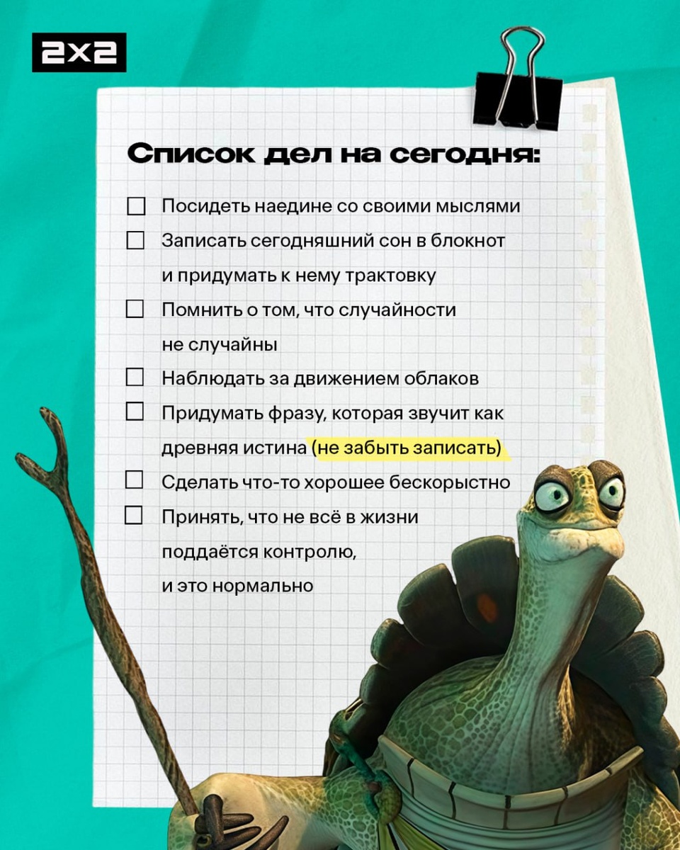 Мастер Угвэй подаёт пример того, как должен выглядеть список дел на среду.