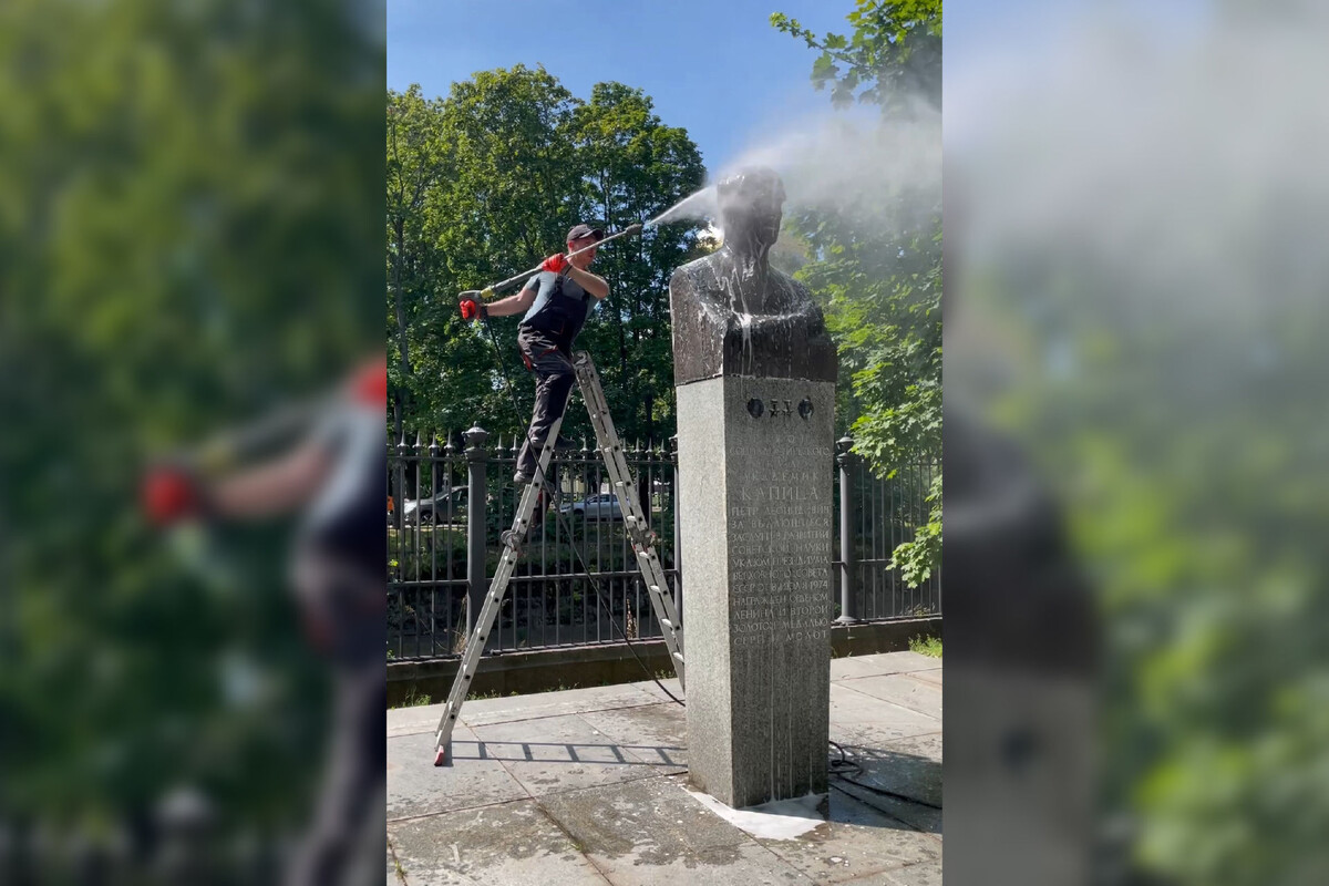 В Кронштадте освежили памятник нобелевскому лауреату Петру Капице